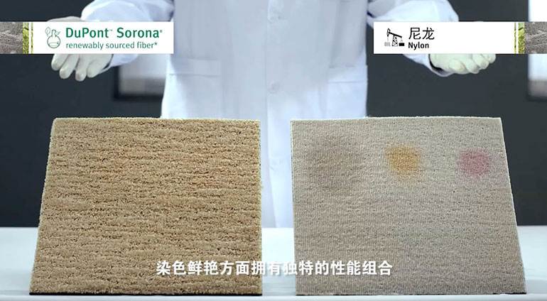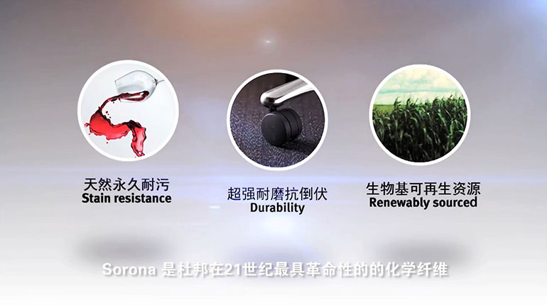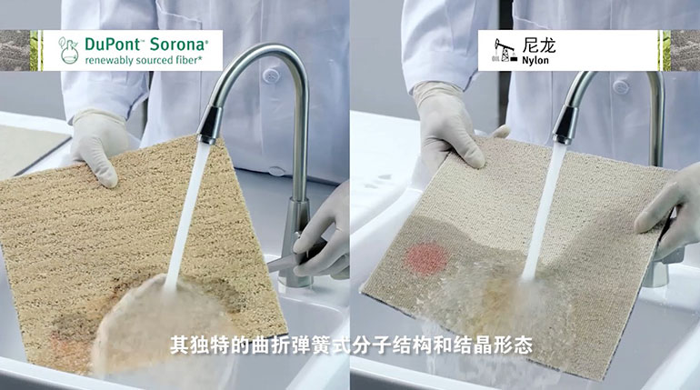 Sorona纖維有37%的成份是可再生植物纖維,減少了我們對石油資源的依賴性,其獨特的曲折彈簧式分子結(jié)構(gòu)和結(jié)晶形態(tài),賦予了Sorona纖維在抗污、柔軟、抗倒伏、染色鮮艷方面擁有獨特的性能組合,Sorona是杜邦在21世紀頗具革命性的化學纖維。